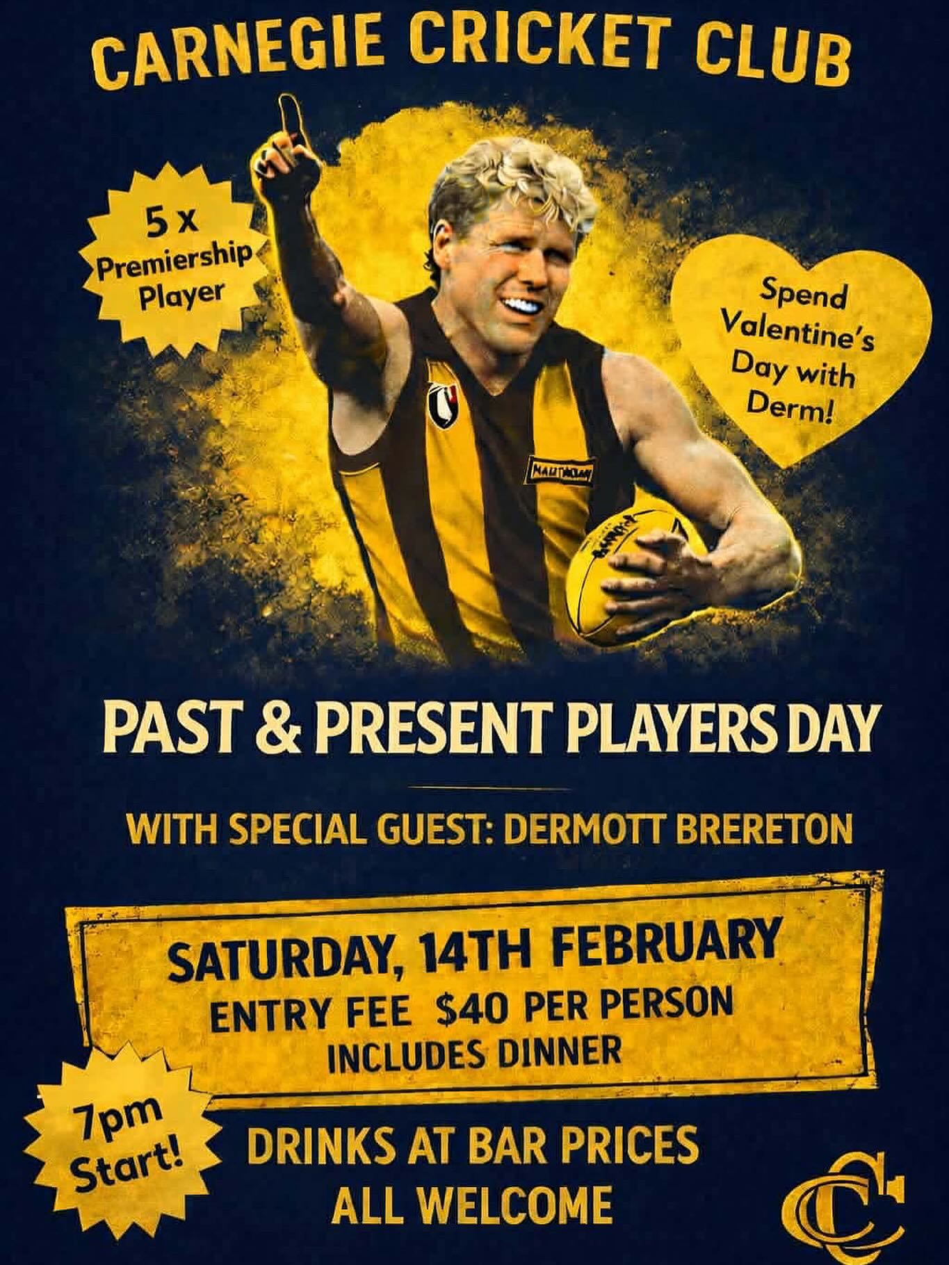 Join us for a fantastic community night at Carnegie Cricket Club as we celebrate our Past & Present Players Day, a special fundraising social event for everyone connected to the club. This is a great opportunity for current and former players, families,...